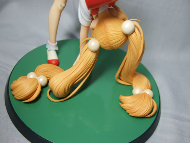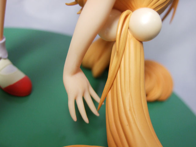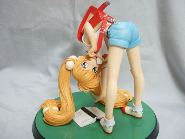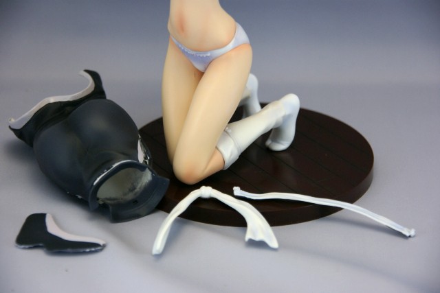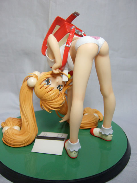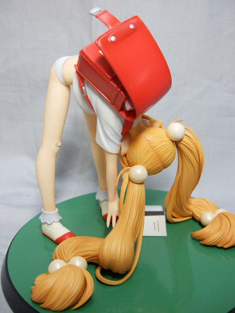 これは、柔らか素材で脱がすように衣服を外せる「POLOシステム」搭載第2弾(第1弾は南部千歳/参考レビュー)となるもので、半ズボンパーツが、股下の分割からPOLOできるみたいで、「1、腰パーツを引き抜きます。」「2、ズボンパーツをやさしく取り外します。」「3、再度腰パーツを差し込んで完成です。」と書かれた説明書の展示もあったもので、グッスマの商品説明によると『全てが計算ずく。おませな小学3年生。ネット上でも大反響、「コミック・ハイ」連載中の人気作「こどものじかん」よりメインヒロイン『九重りん』が1/6サイズで登場です。原作コミック扉絵の斬新なポージングを、人気原型師「智恵理」氏がその繊細な表現力で見事に立体化しました。ランドセルからこぼれ落ちた教科書を拾う小学生ならではのシチュエーションながら、大人じみた色香に目が離せません。こんな早熟な娘のいるクラスの担任になってみませんか?』とされています。