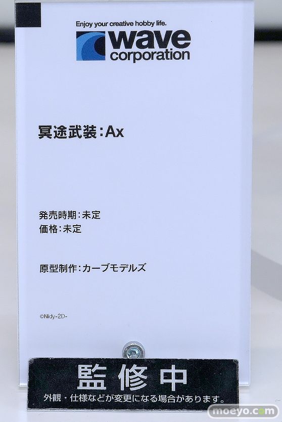 ウェーブ「冥途武装:Ax」(監修中原型) *掲載の展示アイテムは原則的に監修中や製作中のものとなります。 実際の商品とは若干異なる場合がございますので、予めご了承ください。 撮影:いつもの友人/もんぷち。 文:もんぷち。 関連 ■「スマイルフェス2025」の記事一覧 ■スマイルフェス2025 ■ウェーブ ©Nidy-2D-