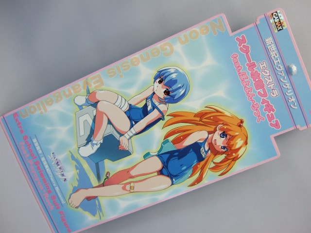 12月27日、セガプライズの「新世紀エヴァンゲリオン エクストラスクール水着フィギュアFeat.ぽよよん・ろっく」(RA)がハビコロ玩具で発売されていました。これは、以前に発売された「EX水着フィギュア」(Ver.2参考レビュー)のデザイン画として、ぽよよん・ろっく氏が描き下ろした、アスカとレイ2種のスク水イラストを、前回とは違い、イラストに忠実な形で立体化したものです。