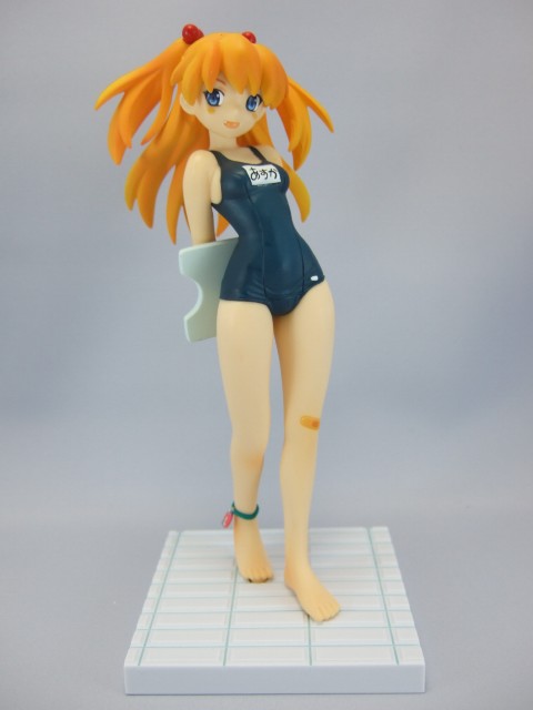 セガプライズ 公式サイトの商品説明によると「大人気イラストレーター「ぽよよん・ろっく」氏が描きおこしたイラストを忠実に立体化!!」というもので、以前に発売された「EX水着フィギュア」(Ver.2参考レビュー)のデザイン画として、ぽよよん・ろっく氏が描き下ろした、アスカとレイ2種のスク水イラストを、前回とは違い、イラストに忠実な形で立体化したものです。