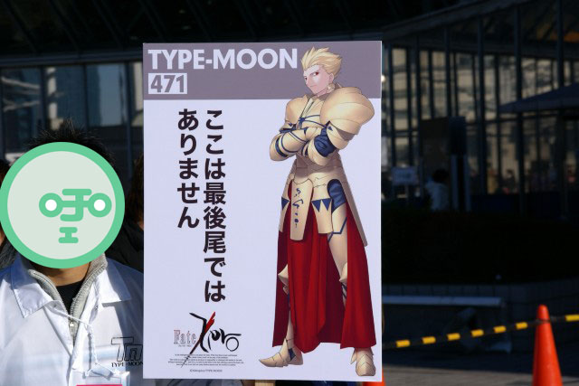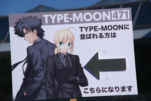 コミケ71レポ TYPE-MOONブースの列整理看板に、スーツ姿のセイバーさん
