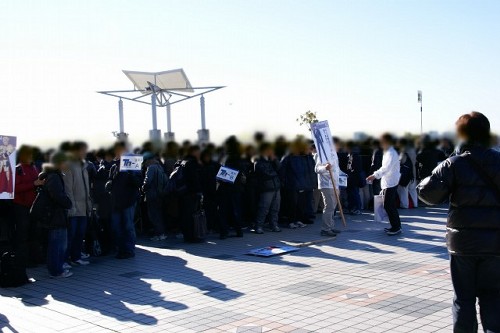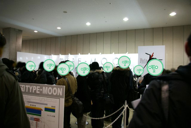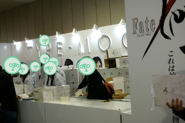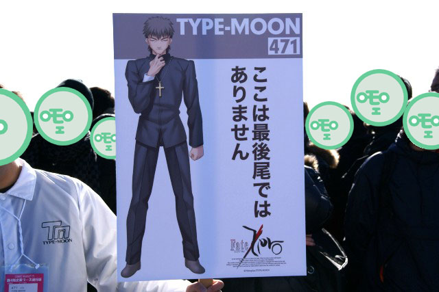 12月29〜31開催の、コミケ71のTYPE-MOONブースは、相変わらずの長蛇の列となっていて、コミケ70同様に、いくつかの列整理用の看板がありました。