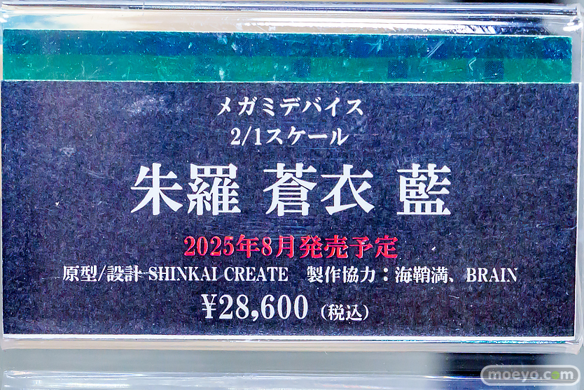 2025年8月発売予定のコトブキヤの新作美少女フィギュア「メガミデバイス 朱羅 蒼衣 藍」の、おそらくPVC製と思われる彩色サンプルのコトブキヤ秋葉原館で展示!『1/1プラモデルの約2倍の身長、体積にして約8倍の特大スケールで業界を震撼させた(?)メガミデバイスフィギュアシリーズ第4弾。公式同人誌「メガミデバイス朱羅カスタマイズ」より、朱羅 忍者に水上・水中特化のカスタマイズが施されたメガミデバイス『朱羅 蒼衣 藍』の登場です。』というもので、原型制作はSHINKAI CREATEさん。製作協力は海鞘満さん、BRAINさん。その展示の様子を画像レビューとしてお伝えします!