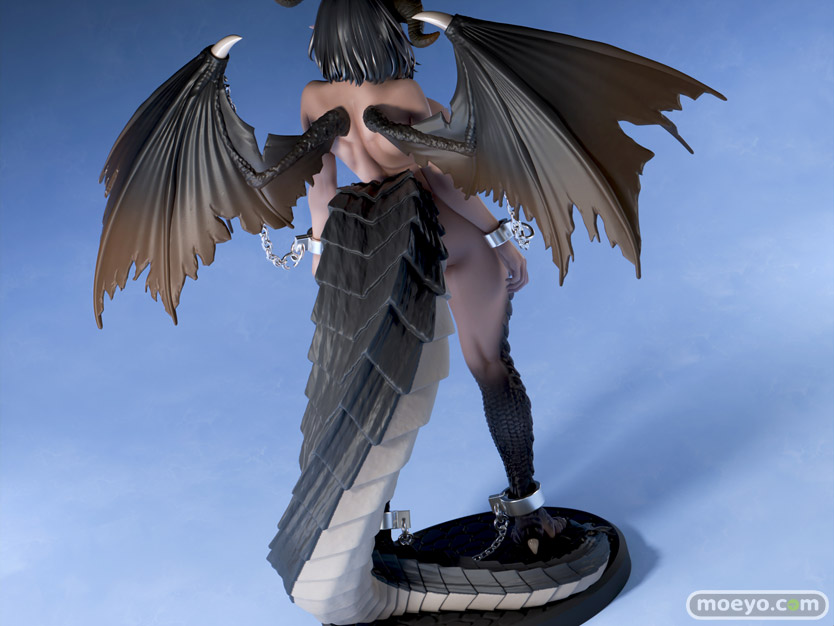 褐色肌の柔らかな質感とは反対に、鱗や鎖は硬質な冷たさを表現。対比によってドラゴン娘の妖艶さを際立たせました。