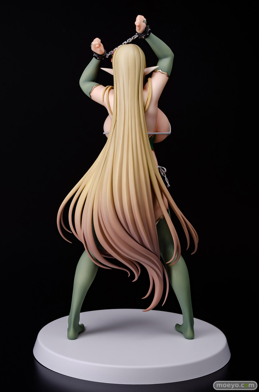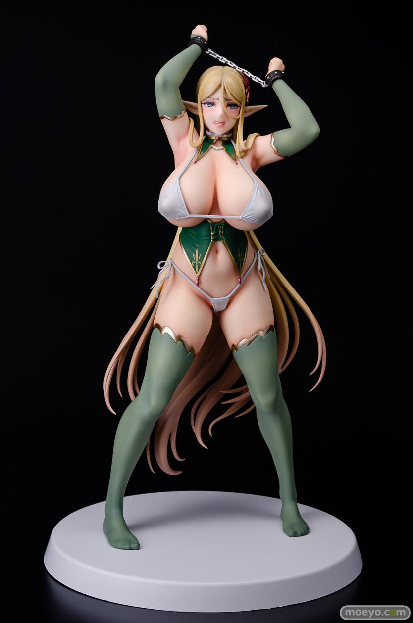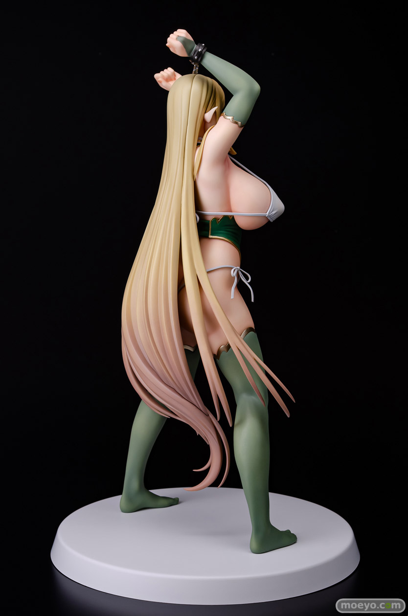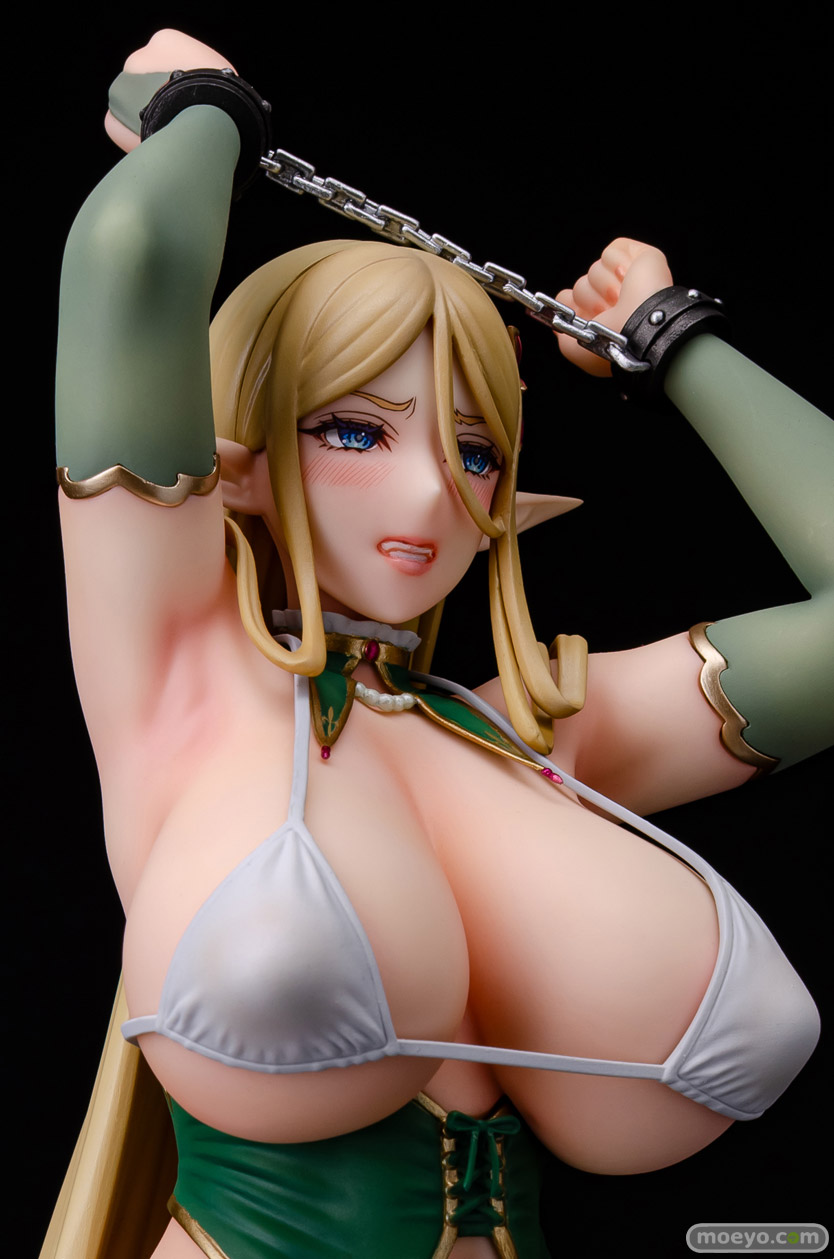 Q-sixの新作エロフィギュア「黄昏の娼エルフ エイレーネ」が予約受付開始!『大人気作品『黄昏の娼エルフ』より、娼婦にされた気高きハイエルフ「エイレーネ」がフィギュア化!うさぎなごむ先生が描く、柔らかく艶やかな肉感が忠実に再現されています!手錠で拘束され抗うような表情、美しくなびくロングヘアの造形が魅力的で、腋やおへそなど細部までこだわり抜かれています。衣装の水着は着脱可能で、快楽に染まった瞳と開いた口元が印象的な恍惚顔パーツが付属します!』というもので、原型制作はノルグレコ(Q-six)さん。彩色見本製作はK2(GILLGILL)さん。そのサンプルの様子を、特別なモザイク版のサンプル画像レビューとしてお伝えします!(アダルトフィギュアとなります!18歳未満の方は閲覧をお控えください。)