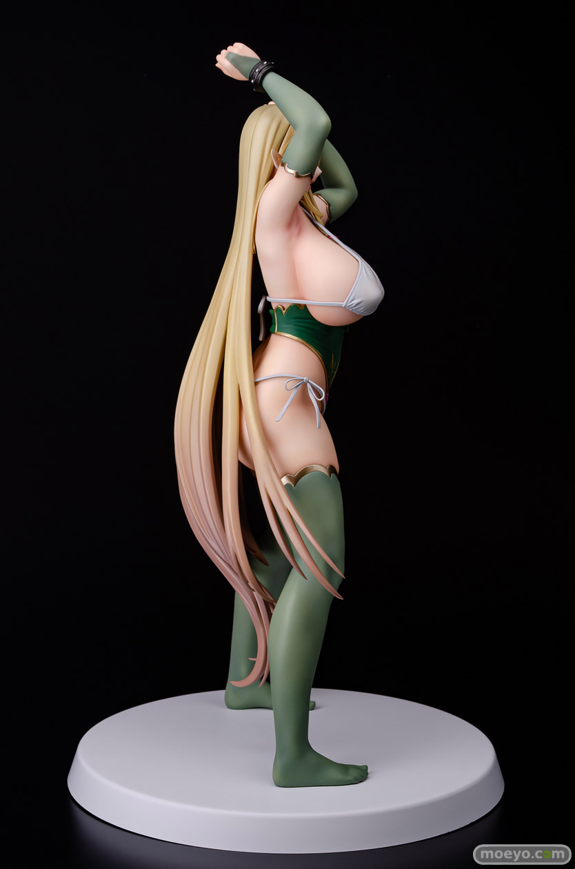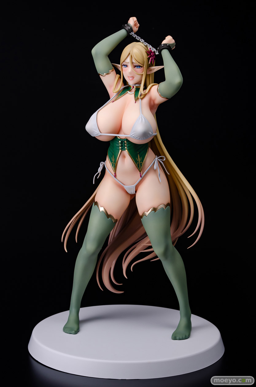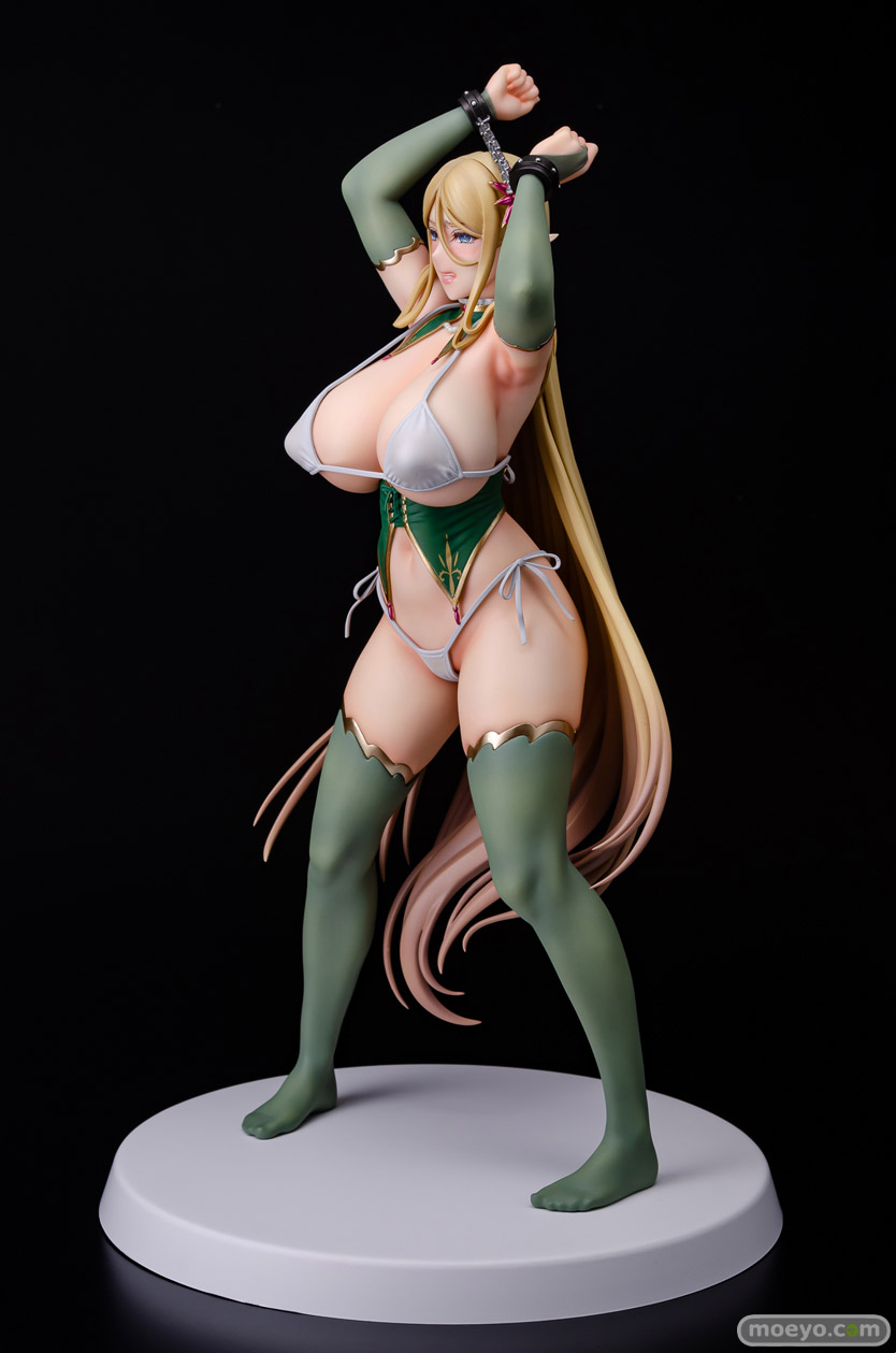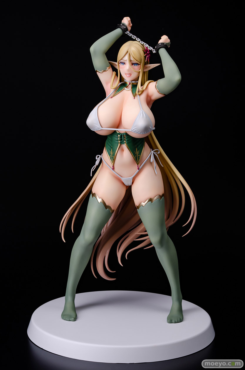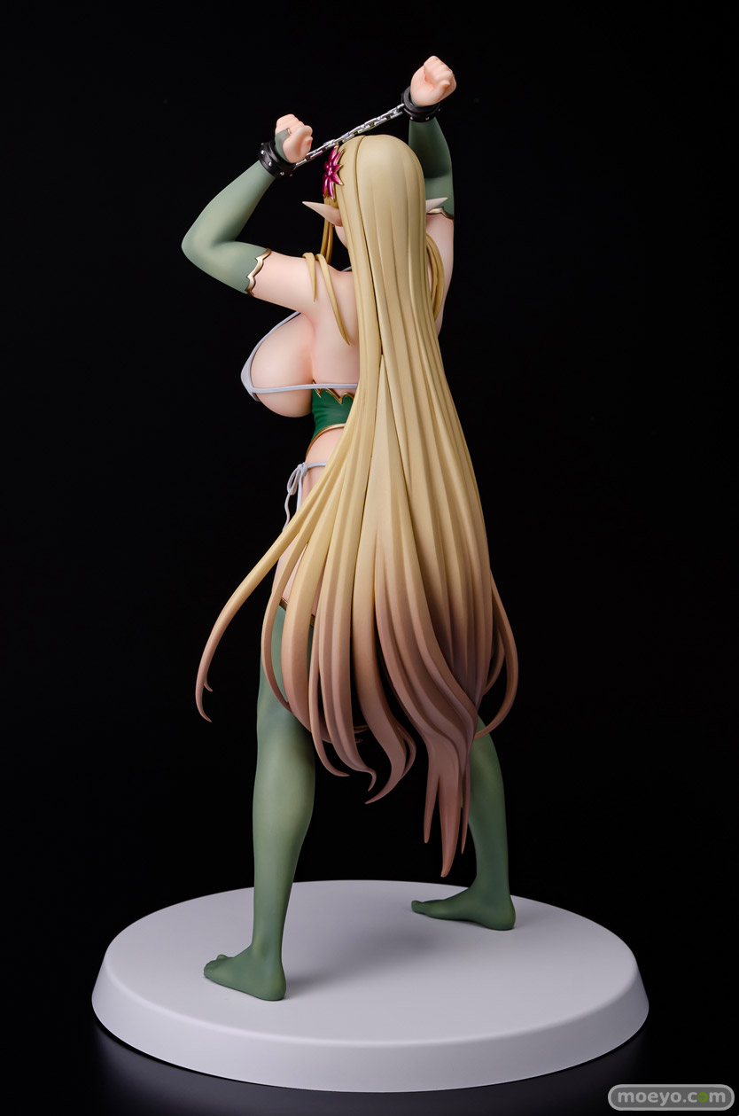 Q-sixの新作エロフィギュア「黄昏の娼エルフ エイレーネ」が予約受付開始!『大人気作品『黄昏の娼エルフ』より、娼婦にされた気高きハイエルフ「エイレーネ」がフィギュア化!うさぎなごむ先生が描く、柔らかく艶やかな肉感が忠実に再現されています!手錠で拘束され抗うような表情、美しくなびくロングヘアの造形が魅力的で、腋やおへそなど細部までこだわり抜かれています。衣装の水着は着脱可能で、快楽に染まった瞳と開いた口元が印象的な恍惚顔パーツが付属します!』というもので、原型制作はノルグレコ(Q-six)さん。彩色見本製作はK2(GILLGILL)さん。そのサンプルの様子を、特別なモザイク版のサンプル画像レビューとしてお伝えします!(アダルトフィギュアとなります!18歳未満の方は閲覧をお控えください。)
