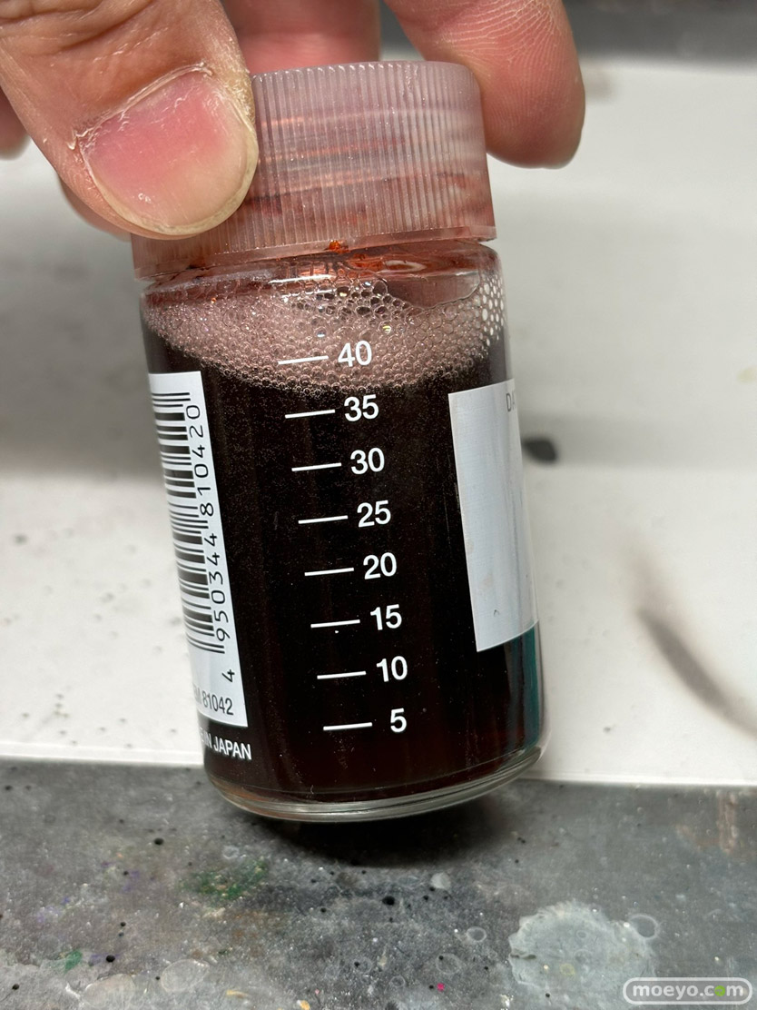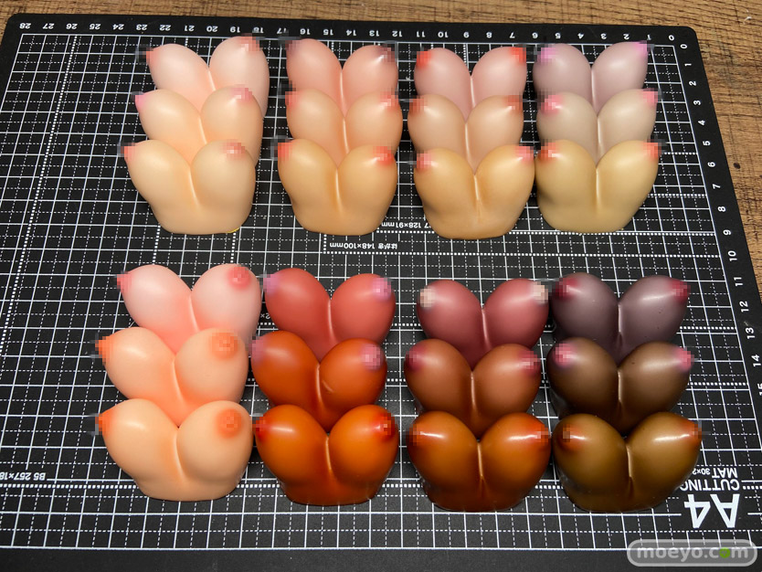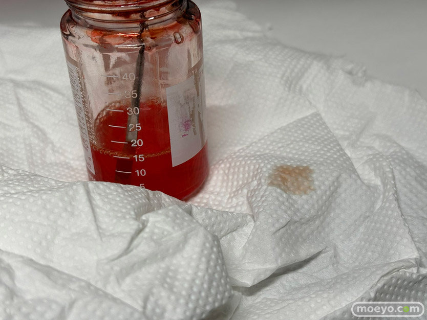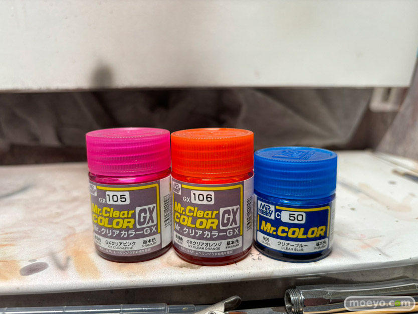 村:私としては肌に一番力を入れており、基本的にはサフレス塗装(=クリア塗料による塗装)をしております。基本的にクレオスのミスターカラーのGX106のオレンジとGX105を使っていますが、肌のトレンドの変化や多様化するイラストレーターさんのタッチに合わせて青や紫、白を混ぜたりと複雑化しております。