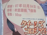 まんだらけ秋葉原店にて、同人即売会「クイーンズコロシアム」のチラシがチラシ棚に置かれていることに気がつきました。これは、3月4日に秋葉原損保会館にて開催予定のクイーンズブレイドオンリーの同人誌即売会で、チラシには「待ち受ける運命は、参加か、不参加か。」とかかれていました。チラシのイラストは偽くろさき氏によるレイナのイラストで、素晴らしいケツですw