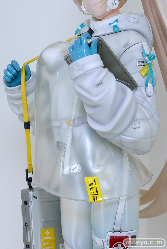 クリーンかつ近未来的なイメージを押し出しつつ立体化致しました。クリアパーツを用いたケープやマスクにより、無機質さと繊細な透明感が同居する印象的な雰囲気を実現。