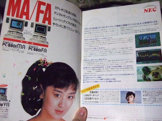 その中で最も古い、コンプティーク1986年12月号の中身を少し覗くと、背表紙にはいきなりPC8801MA/FAの宣伝w(PC画像拡大)