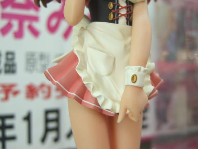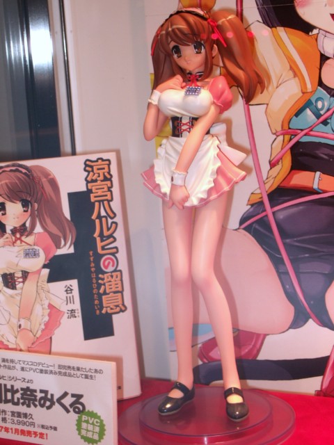 海洋堂ホビーロビーにて、海洋堂 「涼宮ハルヒの憂鬱 朝比奈みくる」(AM)のサンプル展示が開始しています。これは、ワンフェスでガレキとして販売され、即完売した、宮園博久氏原型の、「涼宮ハルヒの溜息」(AA)の表紙イラストのウエイトレス姿のみくるを、PVC完成品にしたもの。アニメの劇中では、短いのに鉄壁だったスカートの中身もしっかりと拝むことが出来ましたよw