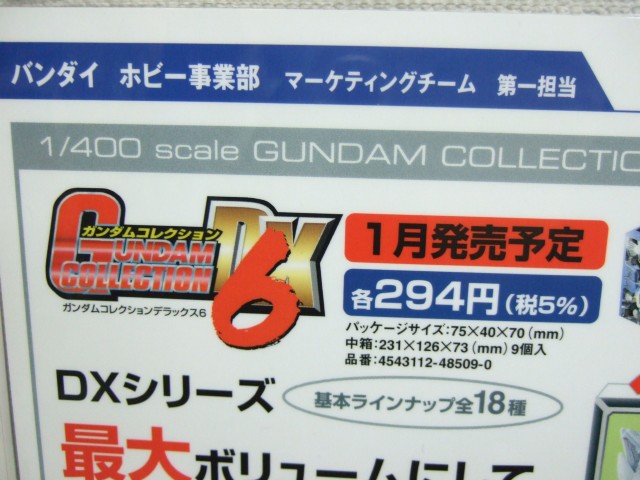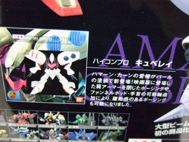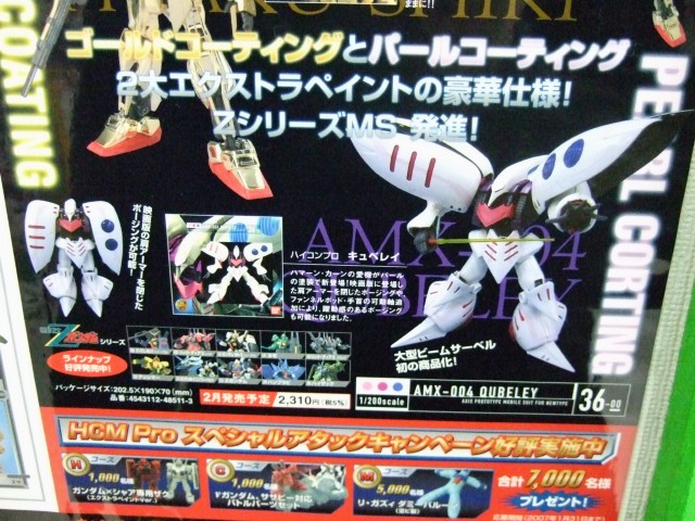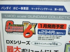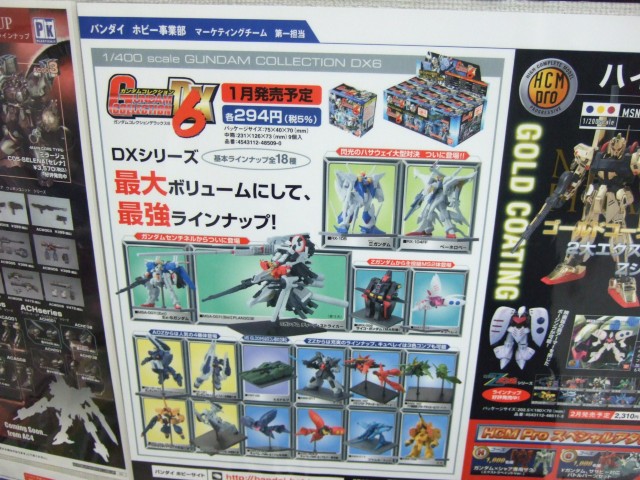 キャラシティにて、「ガンダムコレクションDX6」(AA)や、「HCM-Pro10-01 百式 (ゴールドコーティングVer.)」(AA)、「HCM-Pro36 キュベレイ (パールコーティングVer.) 」(AA)、HY2M グロリアスシリーズ「グフ」(AA)、「リック・ドム」(AA)、「シャア専用リック・ドム エクストラフィニッシュVer. (限定生産)」(AA)等の、1〜3月発売予定のガンダムもの新作の情報POPが掲示されていました。