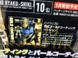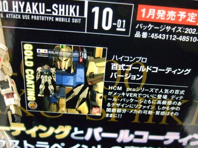 POPによると「HCM proシリーズで人気の百式がメッキVERでついに登場。ディティール・パッケージともに高級感のあるデザインにリファイン。しかも中の関節部分・メカの可動・質感はそのままに!!」というもの。