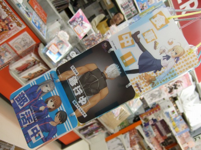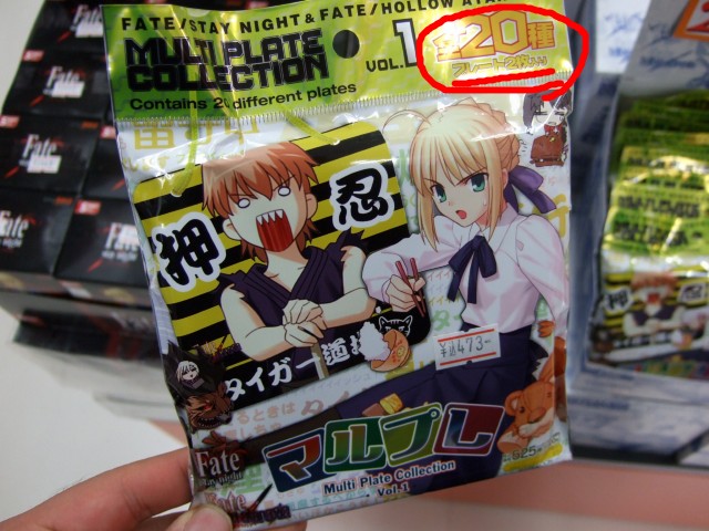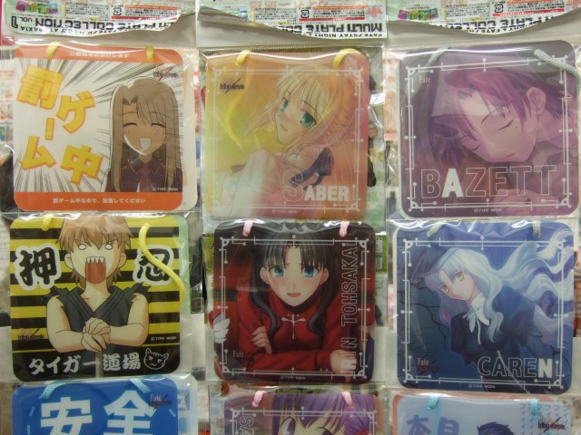 これは、あみあみの商品説明によると「Fateキャラクター達があたなに贈る様々なメッセージ ファンだけでなく萌魂(もえだましい)をくすぐるメッセージ  思わず苦笑するメッセージ等etc…プレート部分に印刷されています。カバンにぶら下げるも良し・部屋のインテリア・ドアプレート・車内ディスプレー等、仕様用途はあなたしだい…」というもので、全20種、ひも吸盤付き。1パック2個入りで、1BOX10パック(20個)入り。