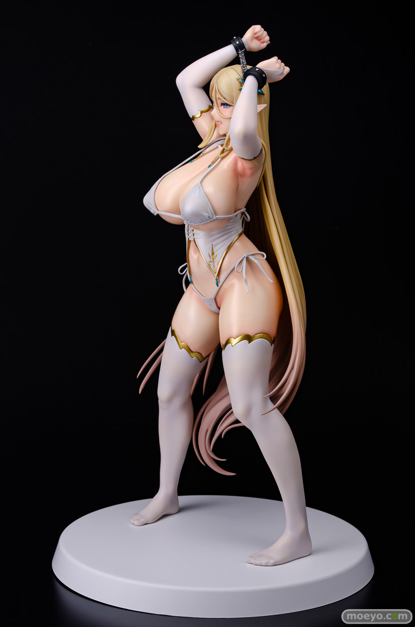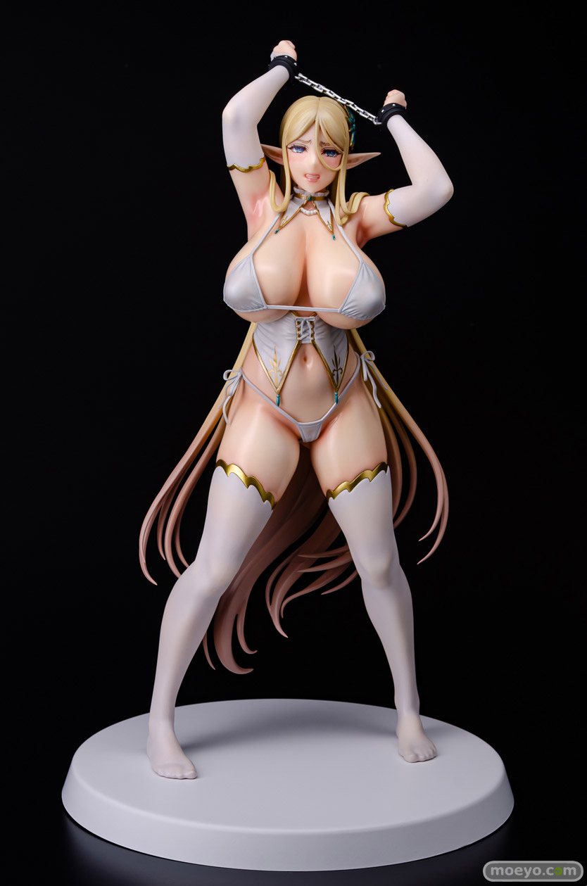 Q-sixの新作エロフィギュア「黄昏の娼エルフ エイレーネ White ver.」が予約受付中!『大人気作品『黄昏の娼エルフ』より、娼婦にされた気高きハイエルフ「エイレーネ」がフィギュア化!衣装は通常版から白へと変更され、肌には美しい光沢が加わり、より艶やかな仕上がりとなっております!手錠で拘束され抗うような表情、美しくなびくロングヘアの造形が魅力的で、腋やおへそなど細部までこだわり抜かれています。衣装の水着は着脱可能で、快楽に染まった瞳と開いた口元が印象的な恍惚顔パーツが付属します!』というカラーバリエーションで、原型制作はノルグレコ(Q-six)さん。彩色見本製作はK2(GILLGILL)さん。そのサンプルの様子を、特別なモザイク版のサンプル画像レビューとしてお伝えします!(アダルトフィギュアとなります!18歳未満の方は閲覧をお控えください。)