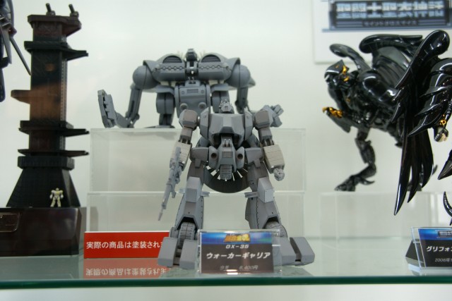 これは、プララジショー2006でも展示されていたもので、バンダイの商品説明によると「戦闘メカ ザブングル」に登場する2代目主役メカ「ウォーカー・ギャリア」が商品化。ギャリィ・ホバーとギャリィ・ウィルによる変形合体を再現!同スケール組み立て式「ドランタイプ」「ホバートラックロードランド」が付属というもの。(ウォーカー・ギャリア – Wikipedia)