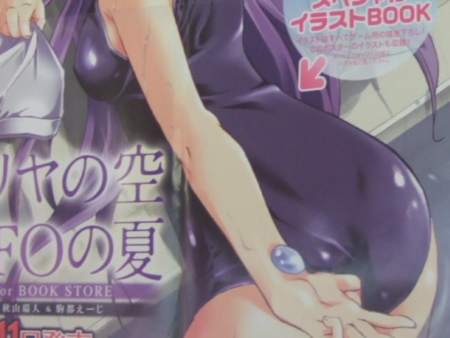 メロンブックスでは店頭で、以前からラジオ会館の外壁にもあった、スク水でお尻を向けている伊里野 加奈のイラストのポスターを掲示していて、このイラストは、POPによると「ソフト同梱のハガキに必要事項を記入の上 切手を貼って送るだけ」でもらえる20Pのブックレット「駒都えーじスペシャルイラストBOOK」にも収録されるものみたいです。