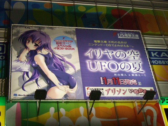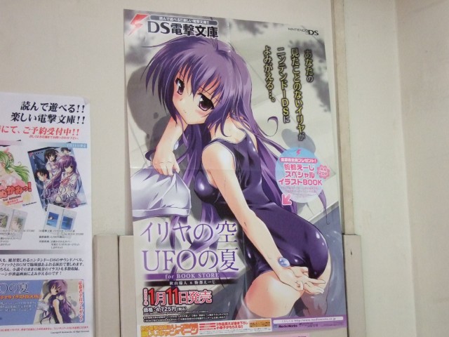 1月11日、「DS電撃文庫 イリヤの空、UFOの夏(初回限定版)」(AA)が発売されました。画像は「ソフト同梱のハガキに必要事項を記入の上 切手を貼って送るだけ」でもらえる「駒都えーじスペシャルイラストBOOK」にも収録されている、告知ポスターのスク水。他、バンダイ「超合金魂 GX-35 ウォーカーギャリア」(AA)発売、ミサイルを担いだサンプル展示など、1月11日のよろずネタを。