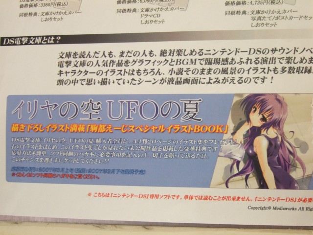 1月11日、「DS電撃文庫 イリヤの空、UFOの夏(初回限定版)」(AA)がメロンブックスで発売されました。