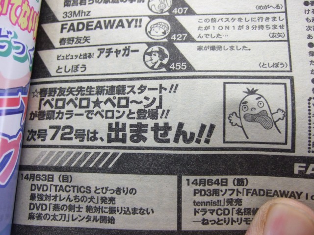 まあ、雑誌感覚で読むのが醍醐味ですから、それ(乱丁・落丁)も味のうちのひとつですなw