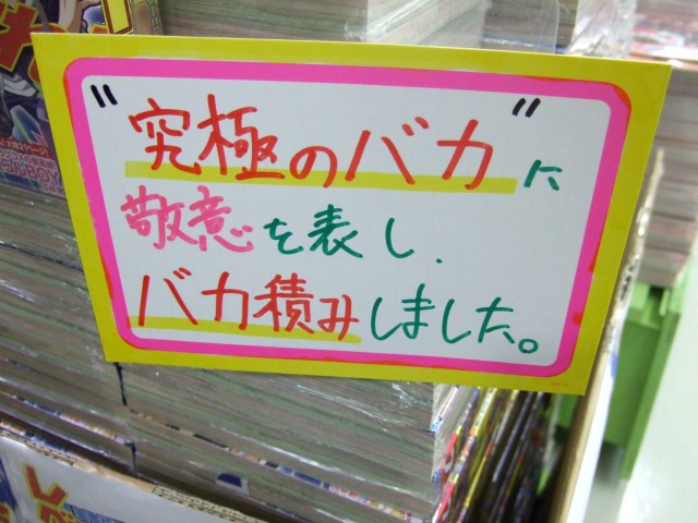 メロンブックスの告知ポスターでは「合同誌ってレベルじゃないぞ!」とされていて、「”究極のバカ”に敬意を表し、バカ積みしました」ともされていました。