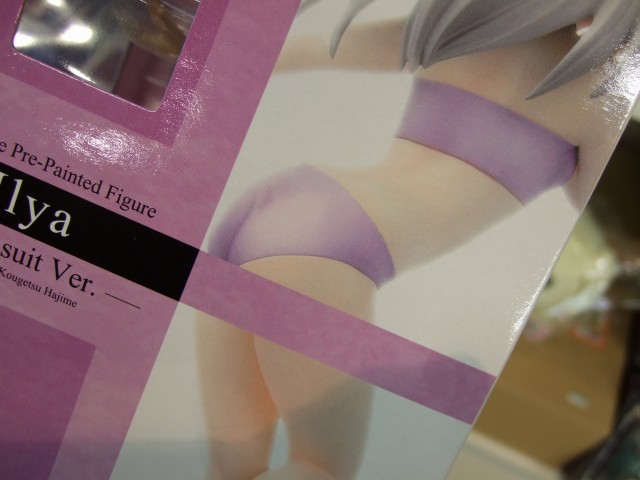 これは、ドリパ2006秋でサンプル展示もあった、凛(参考レビュー)、桜(参考レビュー)、セイバー(AM)(参考レビュー)に続く、アルターの、ホロウアタラクシアの劇中で登場した「わくわくざぶ〜ん」でのヒロインたちの水着姿の立体化シリーズとなる、1/6水着シリーズの第4弾となるもので、グッスマの商品説明によると「アルターのFateヒロインキャラ1/6水着シリーズ第4弾はイリヤが元気いっぱいに登場です。イリヤらしい躍動感とかわいらしいしぐさを『hollow ataraxia』で初登場した水着姿にて立体化!『遠坂 凛』『間桐 桜』『セイバー』そして『イリヤ』と充実の1/6水着シリーズをあなたのお手元にどうぞ!」というもの。