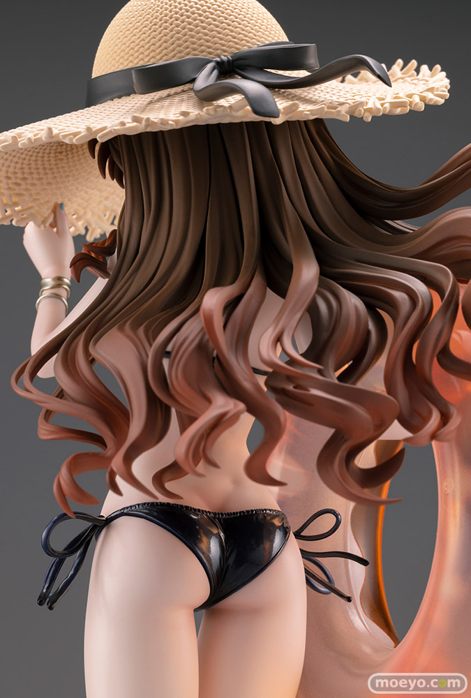 コトブキヤの新作美少女フィギュア「エリシア・ヴァルフェルト 水着Ver. by るいせんと」が予約受付開始!『イラストレーターるいせんと氏のオリジナルキャラクター「エリシア・ヴァルフェルト」が初の立体化!作者たっての希望による描き下ろしイラスト、そして完全監修のもとでのフィギュア化です!夏日のもと、ちょっぴり恥ずかしそうな表情、吸い込まれるような瞳から目が離せません。スレンダーでありながら柔らかさを感じるボディにはパール塗装を用い、つややかな肌を演出。手足のネイルや高級感あるアクセサリー、オレンジの透過光が美しい浮き輪とサングラスなど、細かな持ち物も丁寧に再現しました。』というもので、原型制作はSHINKAI CREATEさん。そのサンプルの様子を画像レビューとしてお伝えします!