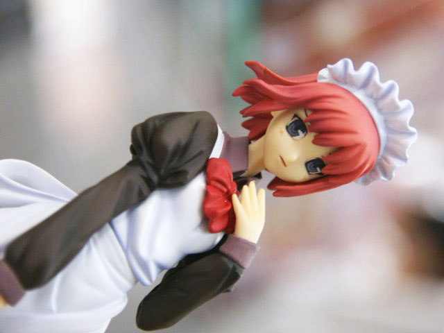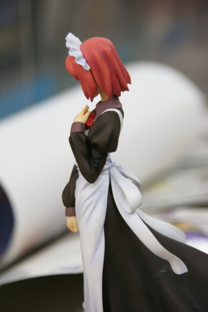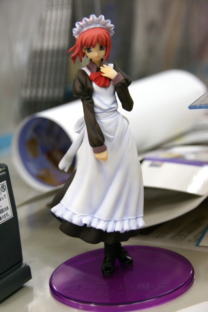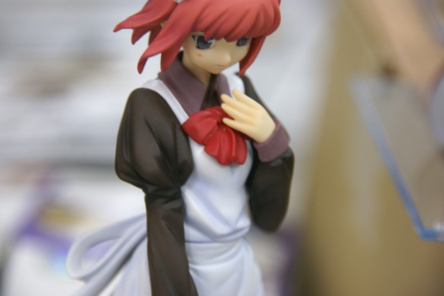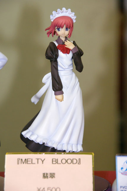 これは、、宮沢模型新作展示会ブースにて、キャストサンプル展示があった、TYPE-MOON「月姫」の続編、ないしは外伝と位置づけされている対戦格闘ゲーム「MELTY BLOOD」のキャラクターの一人「翡翠」を立体化したもの。