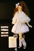 “ドールズ・パーティー16の開催を記念して、ドールアーティストにより繊細なフェイスメイクが施され、ドレスデザイナーによりこの日の為に制作されたドレスをまとって誕生した、世界でただ一人のスーパードルフィーです。抽選方式なので、どなた様にもお迎えのチャンスがございます。―― 運命の出会いが貴方をお待ちしています。”というもの。