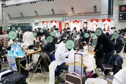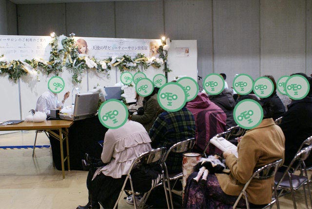 写真左上は、会場前の待機列の一部。今回の待機列は屋内だったため幾分 楽?