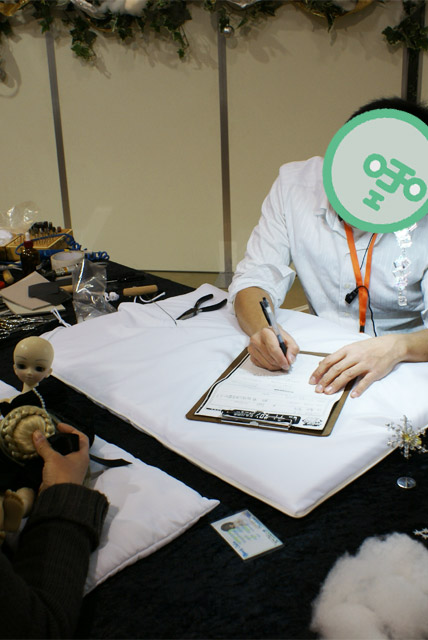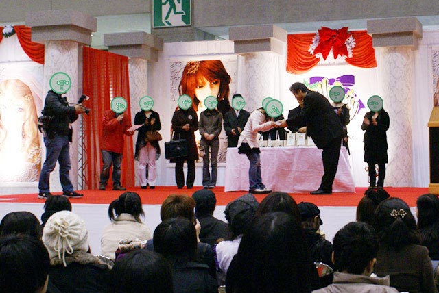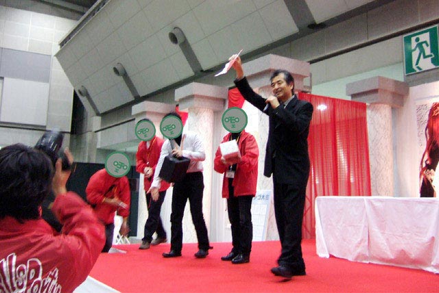 SDの展示されたブース前に抽選箱が設けられ、購入希望者はその中に申し込み用紙を投函。