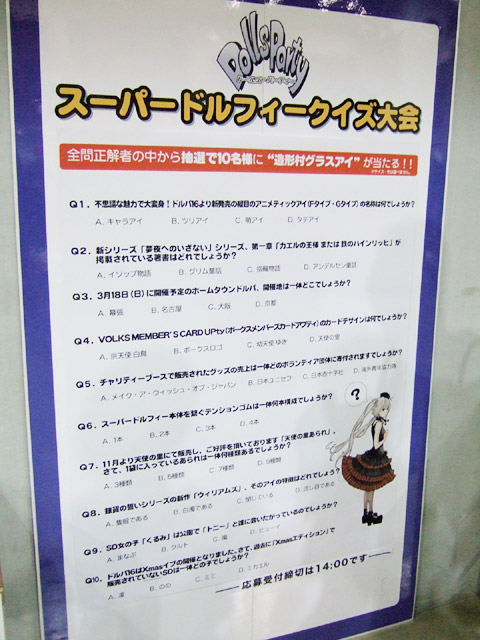 クイズに全問正解すると、抽選で”造型村グラスアイ”が当たるスーパードルフィークイズ大会。