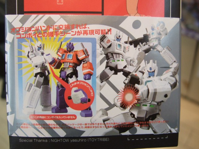 他、キャラシティ、ヤマギワソフト本店などでもサンプル展示を見かけ、コトブキヤ秋葉原店では、コンボイとウルトラマグナスの握手パーツを用いた展示がされていました。