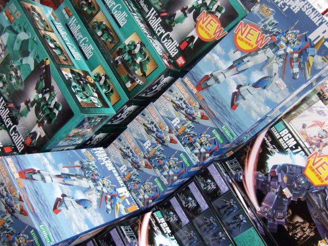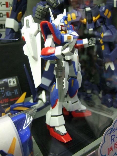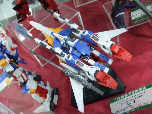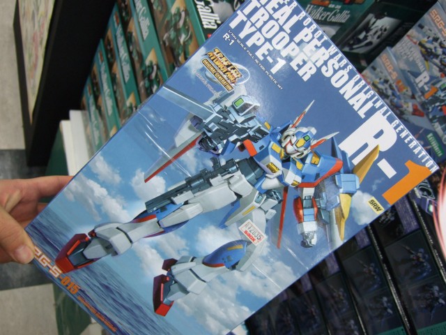 1月18日、コトブキヤ「スーパーロボット大戦 ORIGINAL GENERATION R-1 1/44」(AA)と、バンダイ「HGUC ジムクゥエル」(AA)、「HG モビルバクゥ」(AA)の2種のメカもののプラモデルが発売されました。R-1は「コトブキヤ初の飛行形態への変形を再現した意欲作」で、差し替え変形で飛行体形にも出来るもの。キャラシティでは飛行体形でサンプル展示されていました。