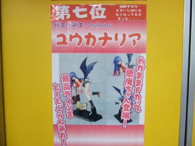 1月19日、実に1月以上ぶりに、キャラシティの週間フィギュアランキングが更新されていました。今回は2007年1月7〜13日までの集計分。1位はやはりこの方、コトブキヤ「To Heart2 向坂環 初登校Ver. 」(AA)(参考レビュー)だったみたいです。2位は「イリヤ 水着Ver. 」(AA)(参考レビュー)、3位は「ナギ 死神装束Ver.」(AA)(参考レビュー)と、アルターものの新作も上位にランクイン。