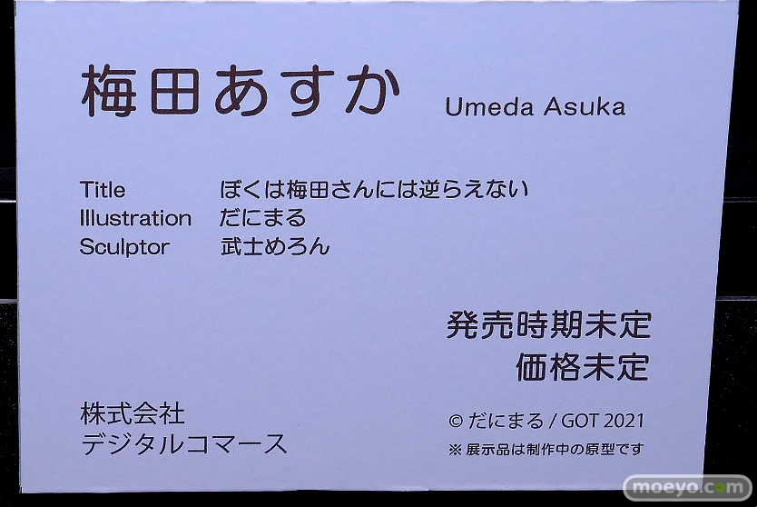 デジタルコマース「ぼくは梅田さんには逆らえない 梅田あすか」(製作中原型) *掲載の展示アイテムは原則的に監修中や製作中のものとなります。 実際の商品とは若干異なる場合がございますので、予めご了承ください。 撮影:いつもの友人/もんぷち。 文:もんぷち。 関連 ■「第11回 ネイティブグループ合同展示会(エロホビ)」の記事一覧 ■デジタルコマース ■ネイティブ © だにまる / GOT 2021