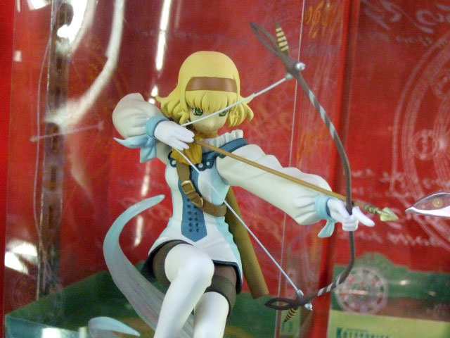 これは、コトブキヤ秋葉原店でサンプルを撮らせていただいたこともあるもので、コトブキヤの説明によると「予言によって守られた世界で、誰かによって狂わされてしまった運命に立ち向かう!2005年末に発売された大人気ファンタジーRPG「テイルズ オブ ジ アビス」。愛する祖国の民を助ける為に、自ら旅立つことを選んだ強い意志を持った王女「ナタリア・L・K・ランバルディア」。行動的で弓の名手である彼女を、躍動感溢れるポージングで立体化いたしました。」とされています。(TALES OF THE ABYSS公式)