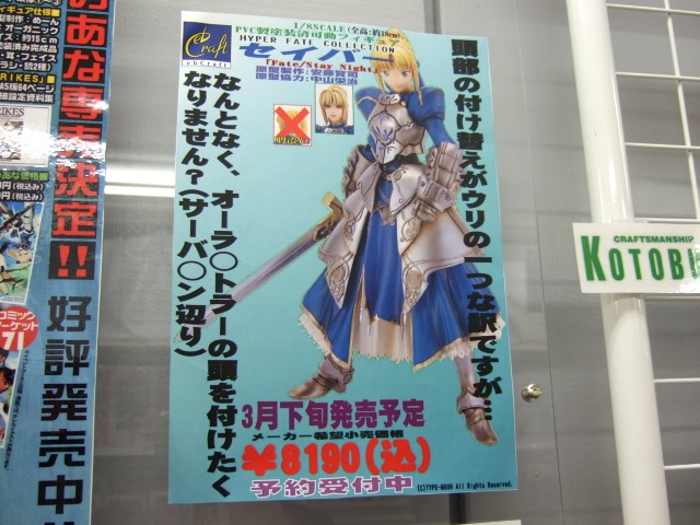 先日アキバで予約開始していたことをお伝えした、ebCraft「HYPER FATE COLLECTION Fate/stay night セイバー」ですが、1月20日にはとらのあな本店でも予約受付が開始され、店内には予約受付中のPOPの掲示も開始していました。