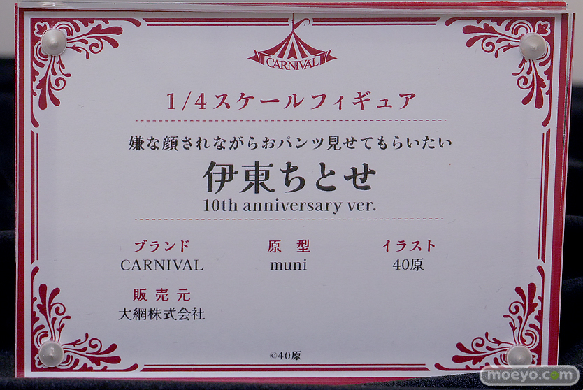CARNIVAL「嫌な顔されながらおパンツ見せてもらいたい 伊東ちとせ 10th anniversary ver.」(監修中原型) *掲載の展示アイテムは原則的に監修中や製作中のものとなります。 実際の商品とは若干異なる場合がございますので、予めご了承ください。 撮影:いつもの友人/もんぷち。 文:もんぷち。 関連 ■ワンダーフェスティバル2025 [夏] の記事一覧 ■ワンダーフェスティバル ■CARNIVAL ©40原