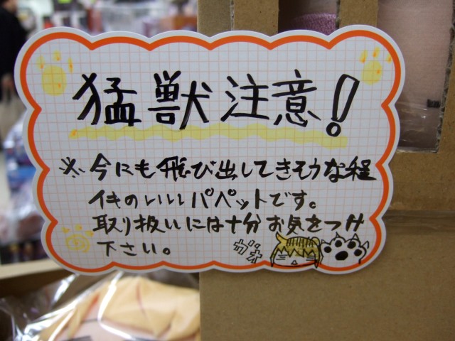 ■ 先日発売をお伝えした、ハンドパペット「Fate セイバー」(AM)ですが、とらのあな本店の陳列に、まるで檻に入ったかのようなパッケージサンプルの展示と、ヘタレPOPが追加されていました。ヘタレPOPには「猛獣注意」として、「ガオ」と叫ぶヘタレセイバーさんが!かわええ〜!w