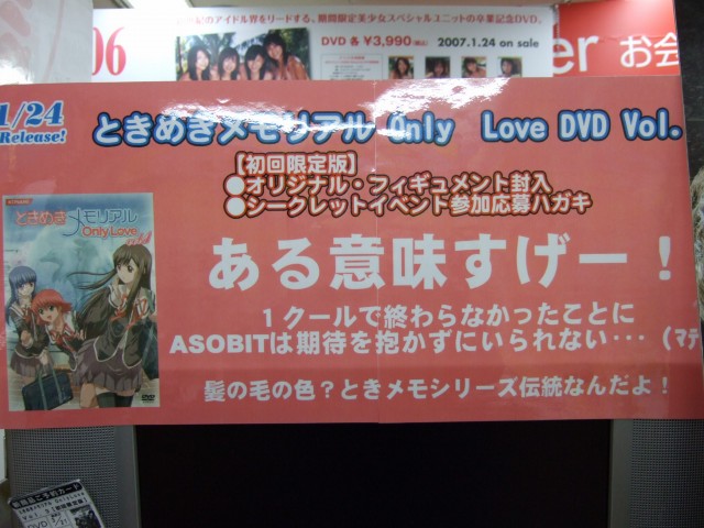 さらに、その隣では「ある意味すげー!」とされた「ときめきメモリアル OnlyLove DVD Vol.1 初回限定版」(AA)も発売されていました。