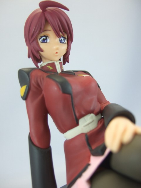 これは、プライズパークの紹介記事によると「バンプレストの業務用ゲームマシン『機動戦士ガンダム SEEDDESTINY 連合vsZ.A.F.T.2』に登場する隠しコスチュームなのです!」というノーマルスーツ姿のミーアと、「なんと言っても表情がとってもキュートなのです。 もう、本当に可愛いのですよ。唇を尖らせている感じで「なによぅ、もー」なんて、言ってる感じですよ。 あれれ、ヤバイ、妄想しずぎちゃった。」という、軍服姿のルナマリアの2種を、すわりポーズで立体化したもの。