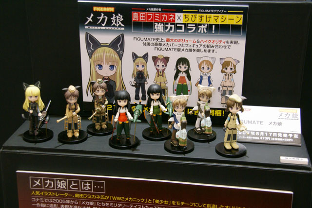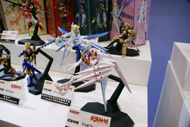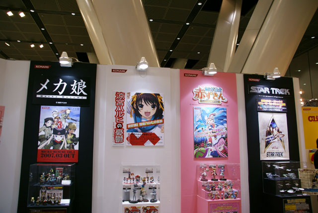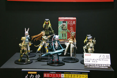 1月23日、都内某所にて、コナミ、エポック社、タカラトミー3社の合同内覧会「トイフォーラム2007」が開催されました。これは、宮沢模型展示会などと同様に、ショップ向けの新作展示会。コナミブースでは、「メカ娘 Vol.3」(AA)や「フィギュメイト メカ娘」(AM)、武装神姫などのほか、参考出展として、初公開となる宮川武氏原型のSOS団3人のフィギュア原型なども公開していました。