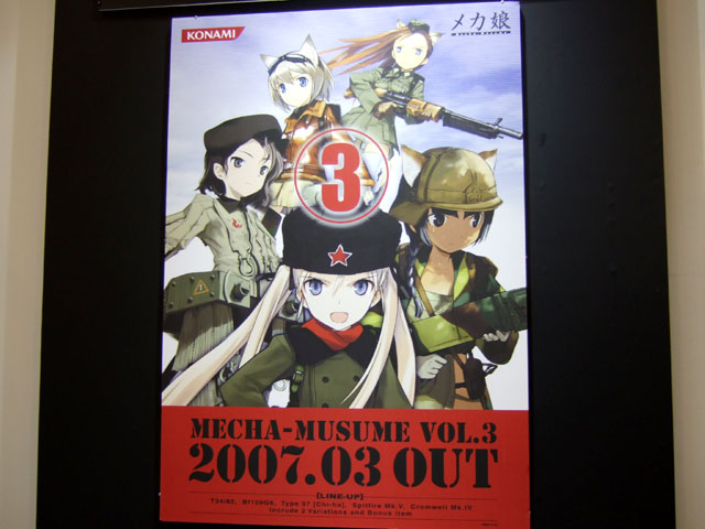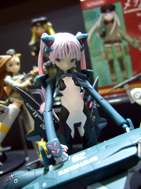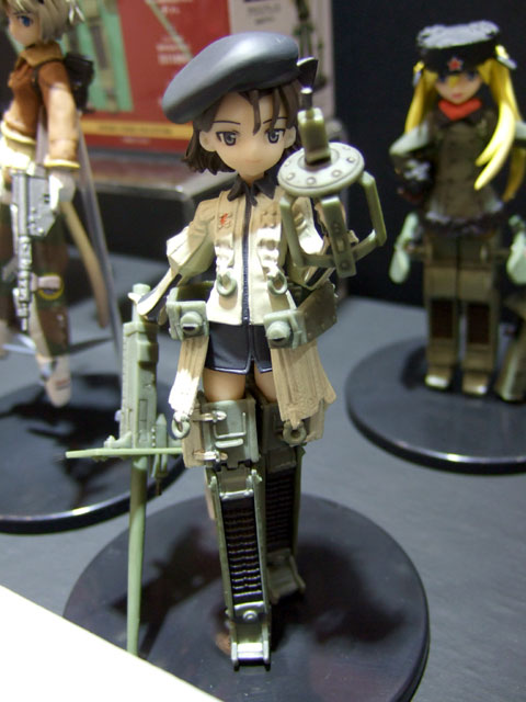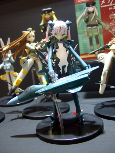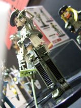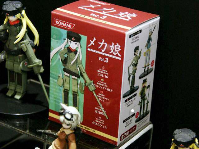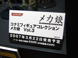 トイフォーラム2007での、「コナミフィギュアコレクション メカ娘 Vol.3」(AA)の展示の様子をお伝えします。これは、島田フミカネ氏のオリジナルデザインの、女の子と機械を融合した「メカ娘」を立体化したトレフィの第3弾となるもの。ノーマル5種のほか、レアアイテム2種、ボーナスフィギュア1種の全8種のサンプルが展示されていました。左画像中心はそのボーナスフィギュア。
