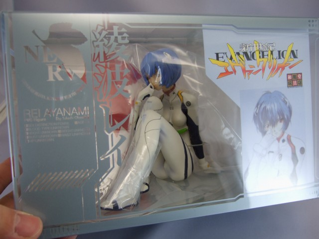 これは、WHF有明15和風堂玩具店ブースサンプル展示もあったもので、Amazonの商品説明によると「アニメ「新世紀エヴァンゲリオン」のキャラクター、EVA零号機の専属操縦者「綾波レイ」の1/7スケールPVC+ABS彩色済み完成品フィギュア。全高約10cm。原型製作は、イラストを描いた本人、岡崎武士氏(はぽい処)。細部まで忠実にイラストを再現し立体化。イラストの持つ独特のムード・イメージが表現されている。」とされている、ワンフェス2006冬ワンダーショウケースにも選ばれた、岡崎武士氏が、ご自身のイラストの綾波を立体化したもの。和風堂玩具店の商品ページでは『「岡崎版」綾波レイ、絵師自らの手で立体化!』と謳われていました。
