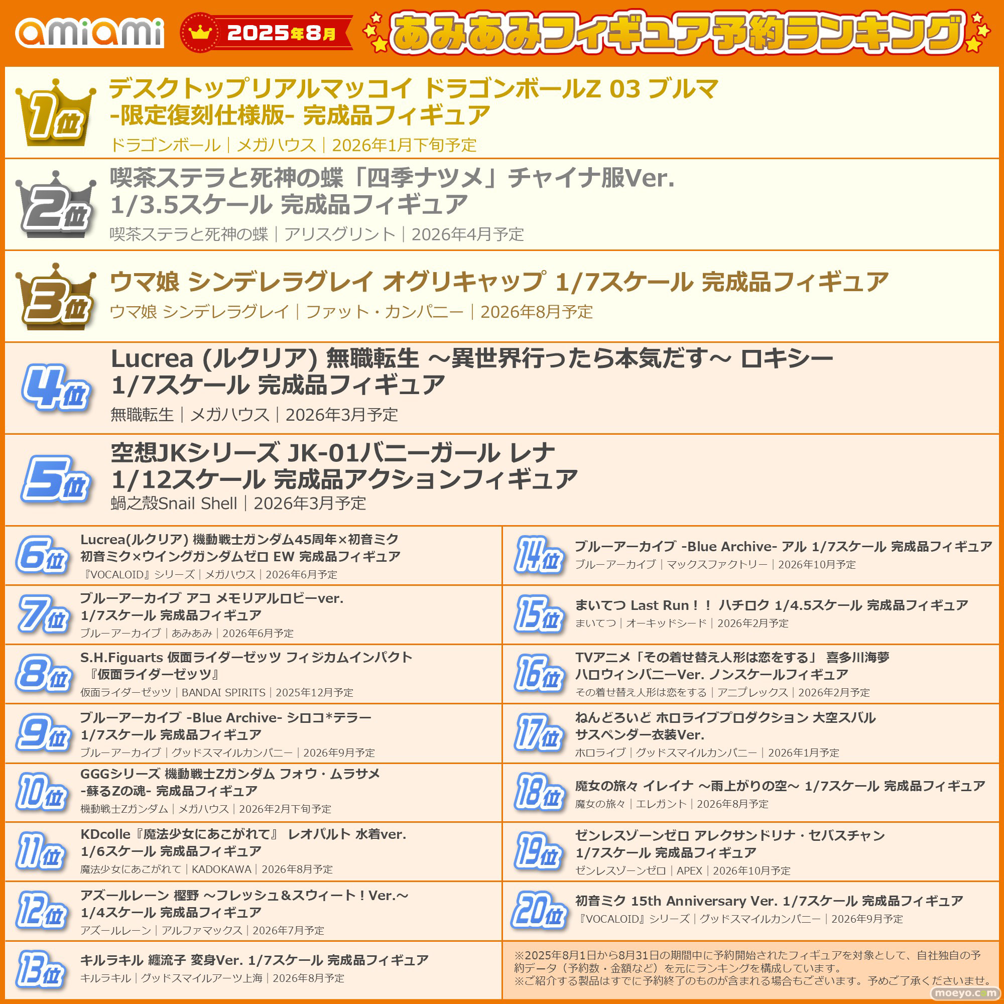 ※2025年8月1日から8月31日の期間中に予約開始されたフィギュアを対象として、自社独自の予約データ(予約数・金額など)を元にランキングを構成しています。