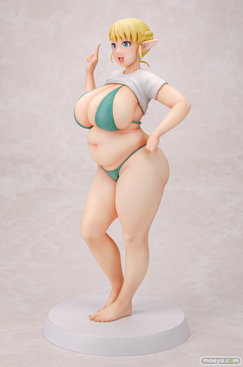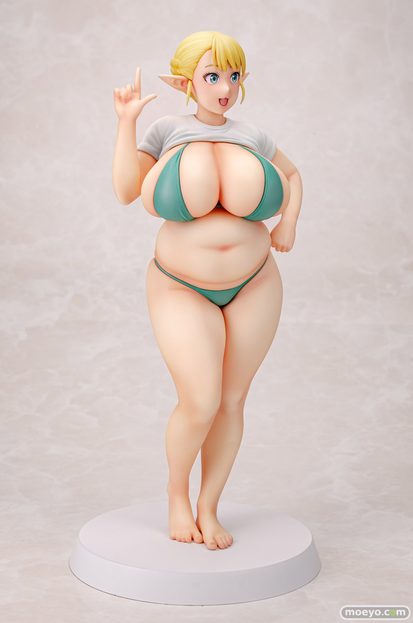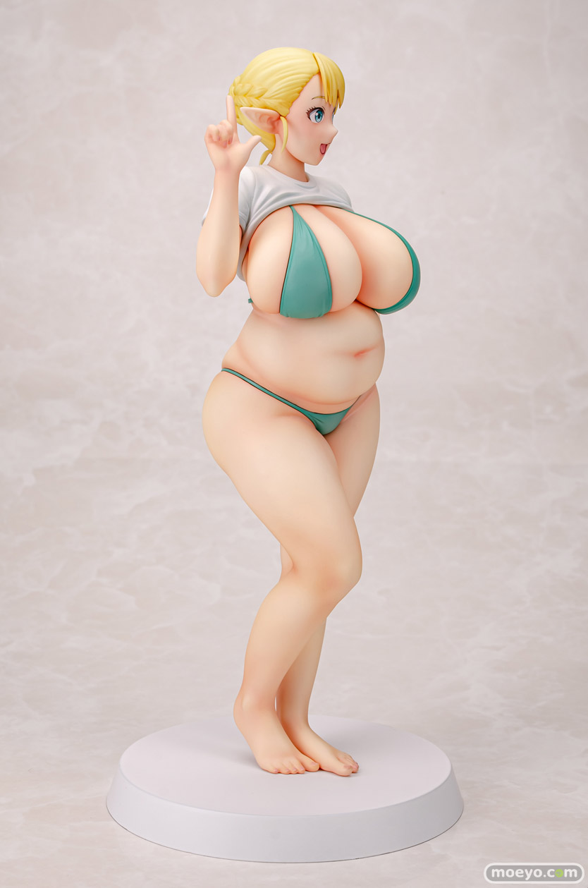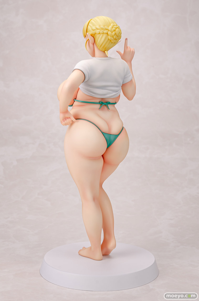 Q-six新作セクシーフィギュア「エルフさんは痩せられない。 絵留札」予約受付開始!特別なモザイク版サンプル画像を公開!Q-sixの新作セクシーフィギュア「エルフさんは痩せられない。 絵留札」が予約受付開始!『大人気作品『エルフさんは痩せられない。』より、ぽっちゃりエルフ「絵留札(えるふだ)」がフィギュア化!絵留札さんの健康的で愛らしいボディが丁寧に再現されています。思わず触れたくなるような柔らかな肉感と、ぽっちゃり好きにはたまらないお腹や太もものボディバランスが魅力です!髪をほどいたロングヘアパーツ等が付属する豪華仕様となっております!』というもので、原型制作はノルグレコ(Q-six)さん。彩色見本製作はK2(GILLGILL)さん。そのサンプルの様子を画像レビューとしてお伝えします!(過激な描写が含まれます!18歳未満の方は閲覧をお控えください。)