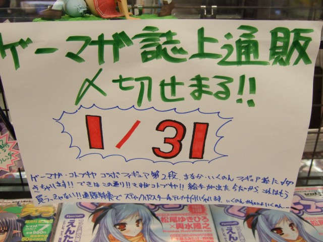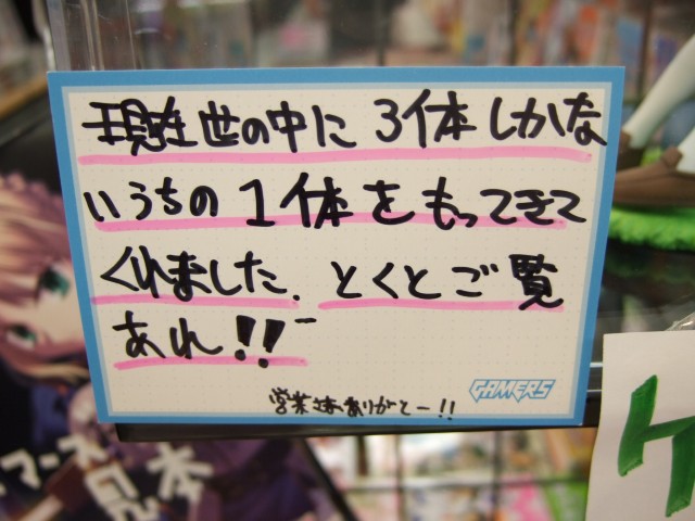POPによると、展示されていたPVCサンプルは「現在世の中に3体しかないうちの1体」みたいです。別のPOPでは、応募用紙付の「ゲーマガ 2007年 02月号」(AA)の画像が掲載され「忘れてた人は急げ!」としてました。