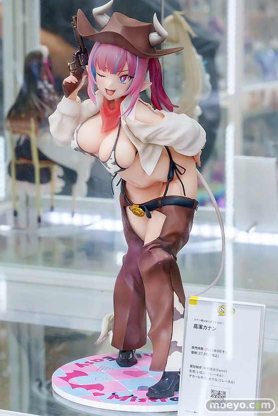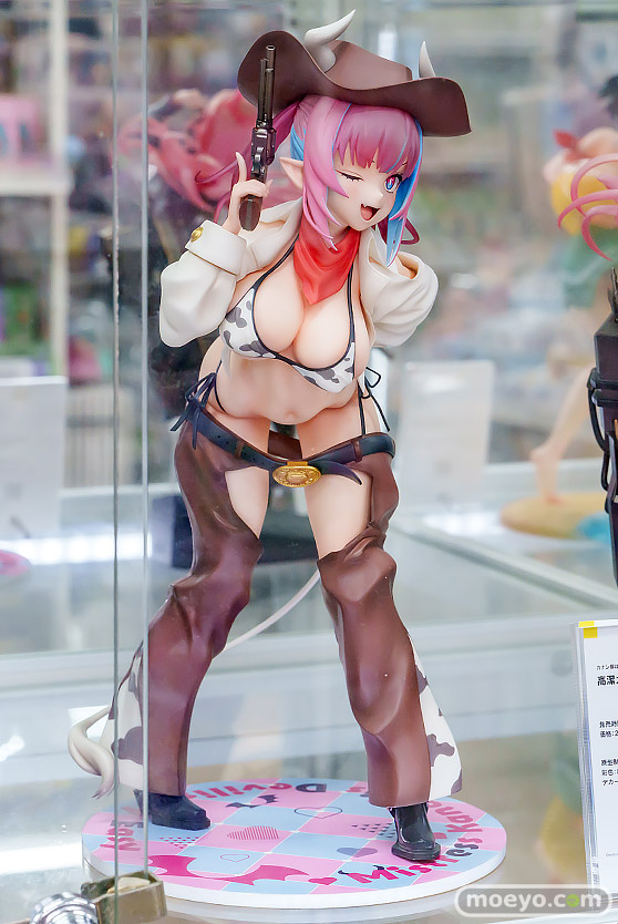 ファット・カンパニーの新作美少女フィギュア「カナン様はあくまでチョロい 高潔カナン」の彩色サンプルが、あみあみ 秋葉原ラジオ会館店で展示!『原作イラストをもとに大胆不敵なカウガールスタイルでウィンク&ピストルポーズを決めたスタイルで立体化しました。豊満なボディラインを引き立てる大胆なビキニ衣装、クリアパーツを用いて透明感を持たせたツートンカラーの髪、存在感抜群のチャップス&ブーツやカウガールハットなど、細部に至るまでこだわり抜いてイラストを忠実に再現しました。また、パーツの着脱でセクシー度が更に上がった牛柄ビキニのみのスタイルにチェンジも可能な二段撃ちギミックで雰囲気の異なる姿をお楽しみいただけます。』というもので、原型制作は阿部昂大(Fenrir)さん。彩色はいなば(クレーネル)さん。デカール制作はあやな(クレーネル)さん。以前「スマイルフェス2025」での展示の様子もお伝えしましたが、魅力的な後ろ姿も確認できましたので、アキバでの展示の様子を改めて画像レビューとしてお伝えします!