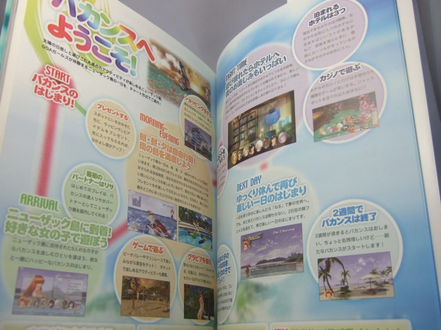 内容は、オビ裏によると「大きなサイズがうれしい美麗ビジュアルを特盛64点掲載!」「シングルグラビアはもちろん、専用ペアグラビアも紹介!」「水着を身につけたDOAガールズをばっちり全スナップ!」「プレゼントやマシンなどアイテムリストも漏らさず収録!」「ザック様がバカンスに役立つマル秘テクニックを伝授!」というもの。